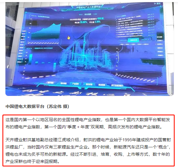 Jiang Hucheng, the deputy general manager of Tianqi Lithium’s Shehong plant, introduced that Shehong's lithium battery industry originated from the state-owned Shehong lithium salt plant, which was established and put into operation in 1995. At that time, there were only three lithium salt production enterprises in China. At that time, new energy vehicles were merely a conceptual idea, and the use of lithium batteries as a prominent new energy material had not yet gained widespread attention. After decades of continuous introduction, cultivation, acquisition, and listing, the lithium battery industry has finally reached a period of reward.