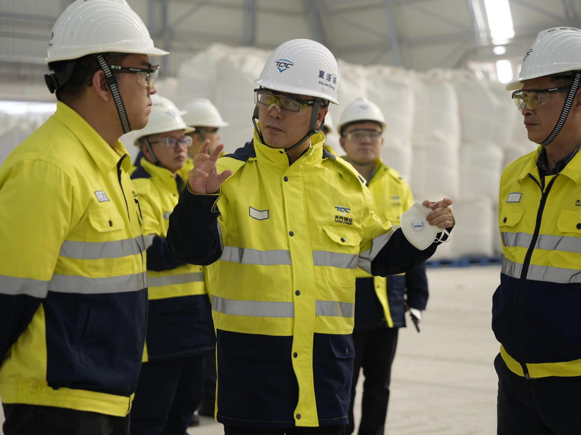 Recently, the director and president of Tianqi Lithium, HA Frank Chun Shing, visited the Suining Tianqi Lithium Co., Ltd. (Suining Tianqi or Anju project) to inspect the work, gaining a detailed understanding of production operations and work plans. Accompanied by deputy general managers Fan Haijiang and Jiang Hucheng, they reported on the project.